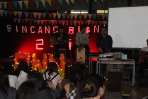 Bisnis ngobrol-ngobrol merupakan acara pertama yang menghimpun seluruh mahasiswa baru, angkatan 2017 untuk berkumpul bersama agar bisa mengenal satu sama lain lebih dekat lagi, selain itu acara ini diselenggarakan agar mahasiswa lebih mengerti tentang perkuliahan, organisasi-organisasi yang ada di lingkungan perkuliahan, dan juga orientasi perkenalan mahasiswa (ospek) terutama untuk Bisnis Simulation and Getring (BISING).