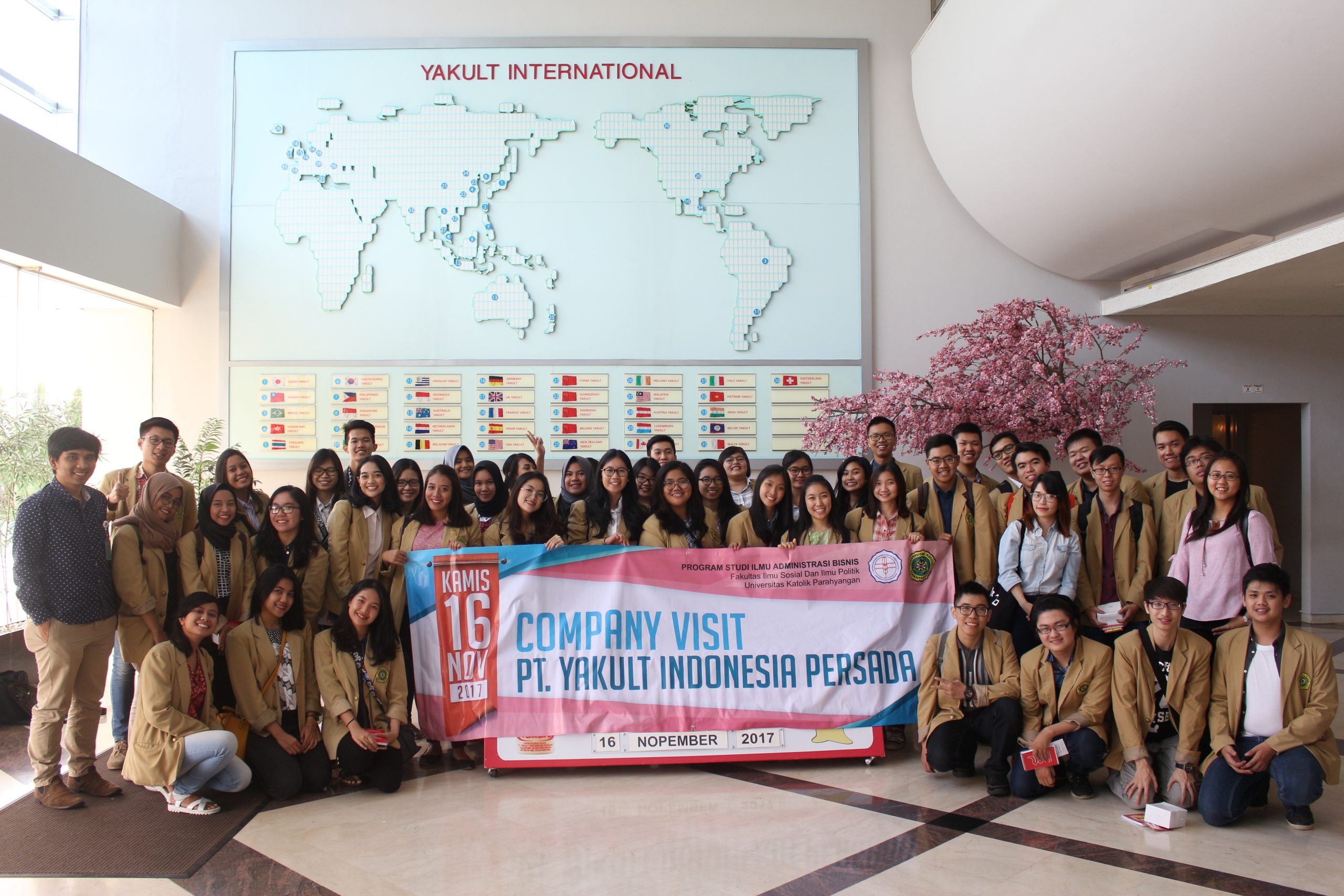 PT YAKULT INDONESIA PERSADA- pada tanggal 16 November 2017, Mahasiswa Program Studi Ilmu Administrasi Bisnis, Universitas Katolik Parahyangan, mengadakan kunjungan ke PT Yakult Indonesia Persada. Kunjungan Perusahaan itu dilaksanakan oleh Himpunan Mahasiswa Program Studi Ilmu Administrasi Bisnis terkait dengan antusias mahasiswa untuk melakukan Kunjungan Perusahaan